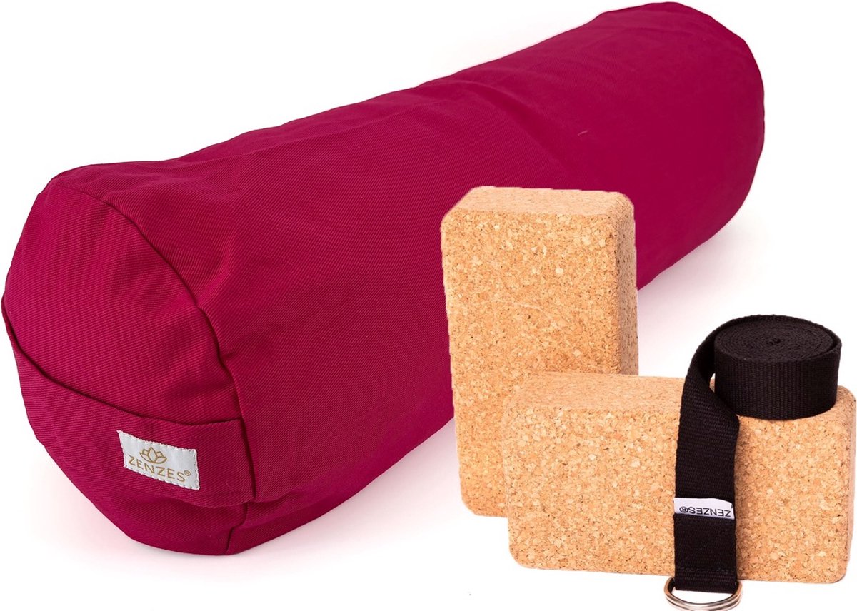 ZENZES® Pro Eco bolster met yogariem en 2 yogablokken – fuchsia